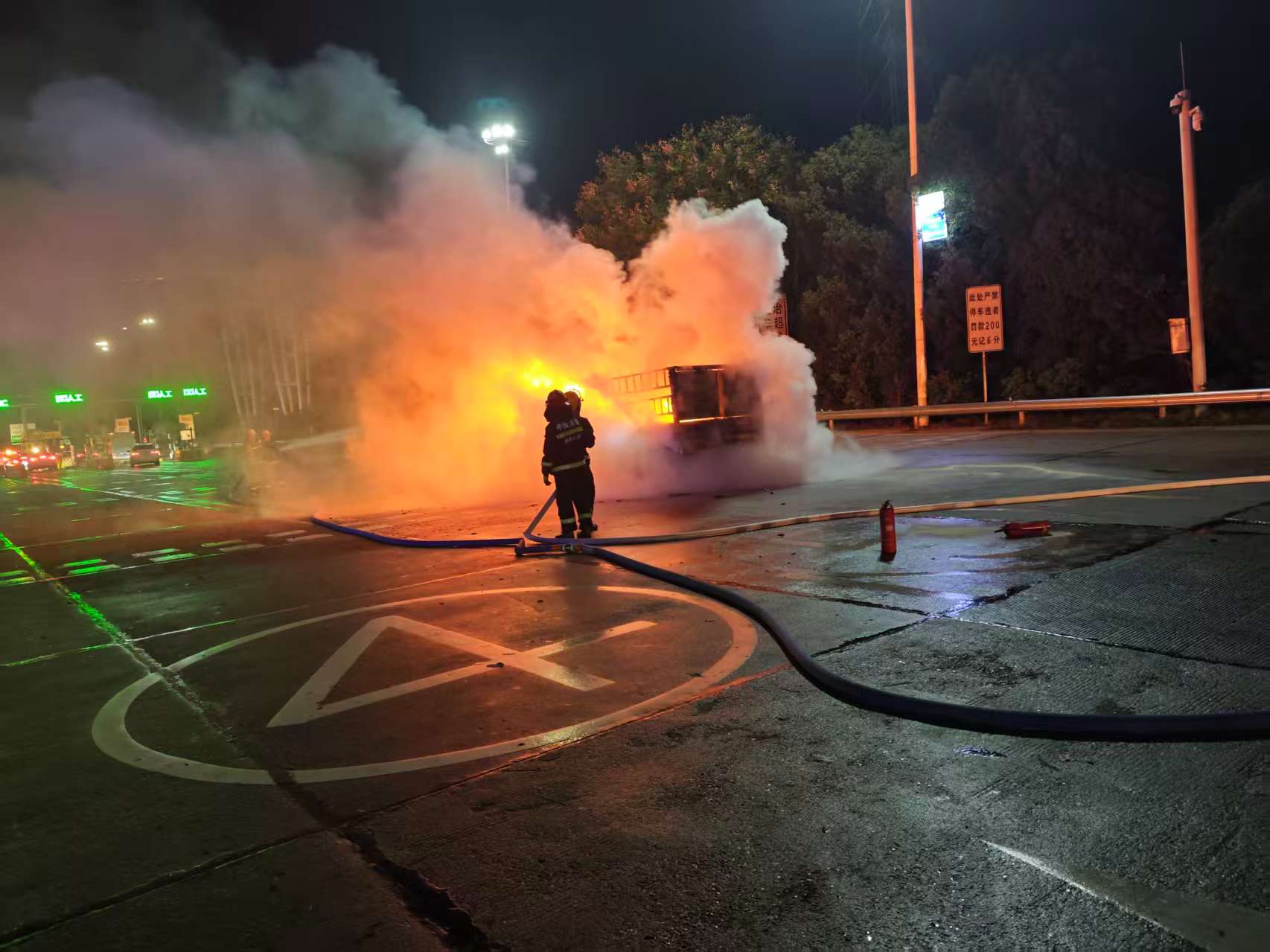 11月17日傍晚,長益高速長沙西收費站出口廣場上,一輛電動貨車在準備繳費時,車頭突然冒出濃煙,隨即竄出明火,現(xiàn)場濃煙滾滾,情況危急。在“站、警、消”多方高效聯(lián)動下,從火情突發(fā)到秩序井然,從濃煙滾滾到隱患...